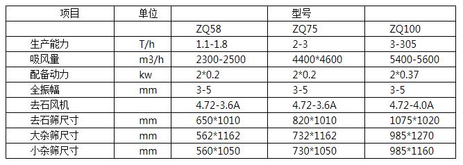 ZQ系列清理去石組合篩廣泛用于稻谷、谷子、小麥、玉米、豆類(lèi)、花生、飼料及食品加工廠(chǎng)用作原糧的清理。不僅可清理出原糧中的大、小和輕雜質(zhì),還同時(shí)清理沙石,達(dá)到凈石的目的。該機(jī)與相應(yīng)的風(fēng)機(jī)配合使用,以振動(dòng)電機(jī)為動(dòng)力,通過(guò)振動(dòng)電機(jī)產(chǎn)生的激振力,使篩體作往復(fù)振動(dòng)。該機(jī)有三層篩面,根據(jù)不同原糧配置篩孔尺寸。(用戶(hù)訂貨時(shí)說(shuō)明)上層篩面清理出大雜,如大石塊、大秸稈、樹(shù)枝等。中層篩面將小于篩孔尺寸的小雜質(zhì),如小于谷物的碎石塊、沙粒、土等從篩孔漏下排出機(jī)外。下層篩是專(zhuān)用于去石的凹凸不銹鋼網(wǎng)。在吸風(fēng)力的作用下,鋪滿(mǎn)去石篩的物料處于懸浮狀態(tài),風(fēng)力根據(jù)產(chǎn)量和物料種類(lèi)是由風(fēng)量調(diào)節(jié)板調(diào)整。物料從出料口排出,沙石從出石口排出。該機(jī)由于配置振動(dòng)電機(jī),在開(kāi)機(jī)和停機(jī)時(shí),有十幾秒的較大晃動(dòng),正常工作狀態(tài)很穩(wěn)定,噪音很小。