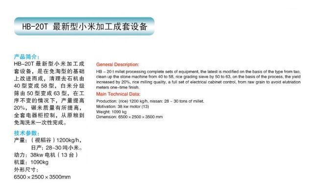 HB-20T 新型小米加工成套設(shè)備 2019-4-30 本文被閱讀 5631 次