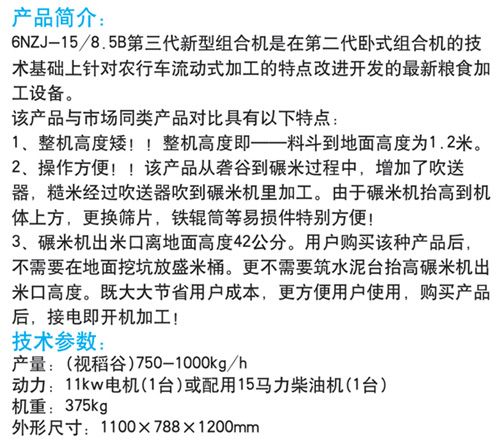 魚(yú)臺(tái)縣三高機(jī)械有限公司三高牌組合礱碾米機(jī)有NZJ和SB兩個(gè)系列,NZJ-10/8.5聯(lián)合米機(jī)85年、90年連續(xù)榮獲省優(yōu),聯(lián)系人:袁經(jīng)理:13705477344